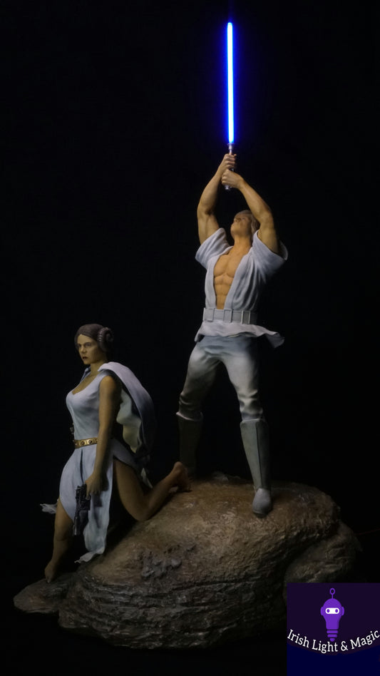 Luke and Leia Skywalker Statue with realistic Light Saber