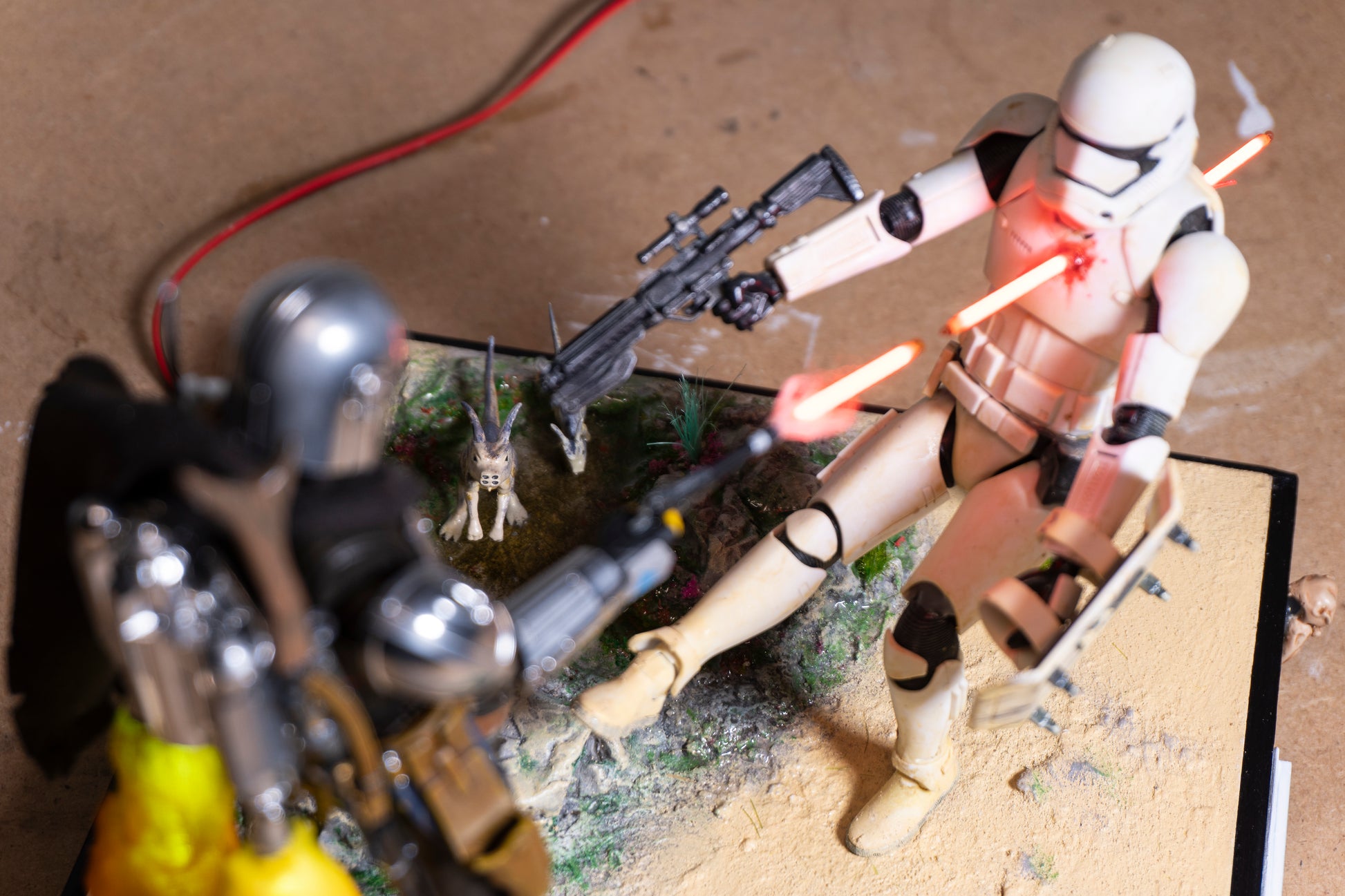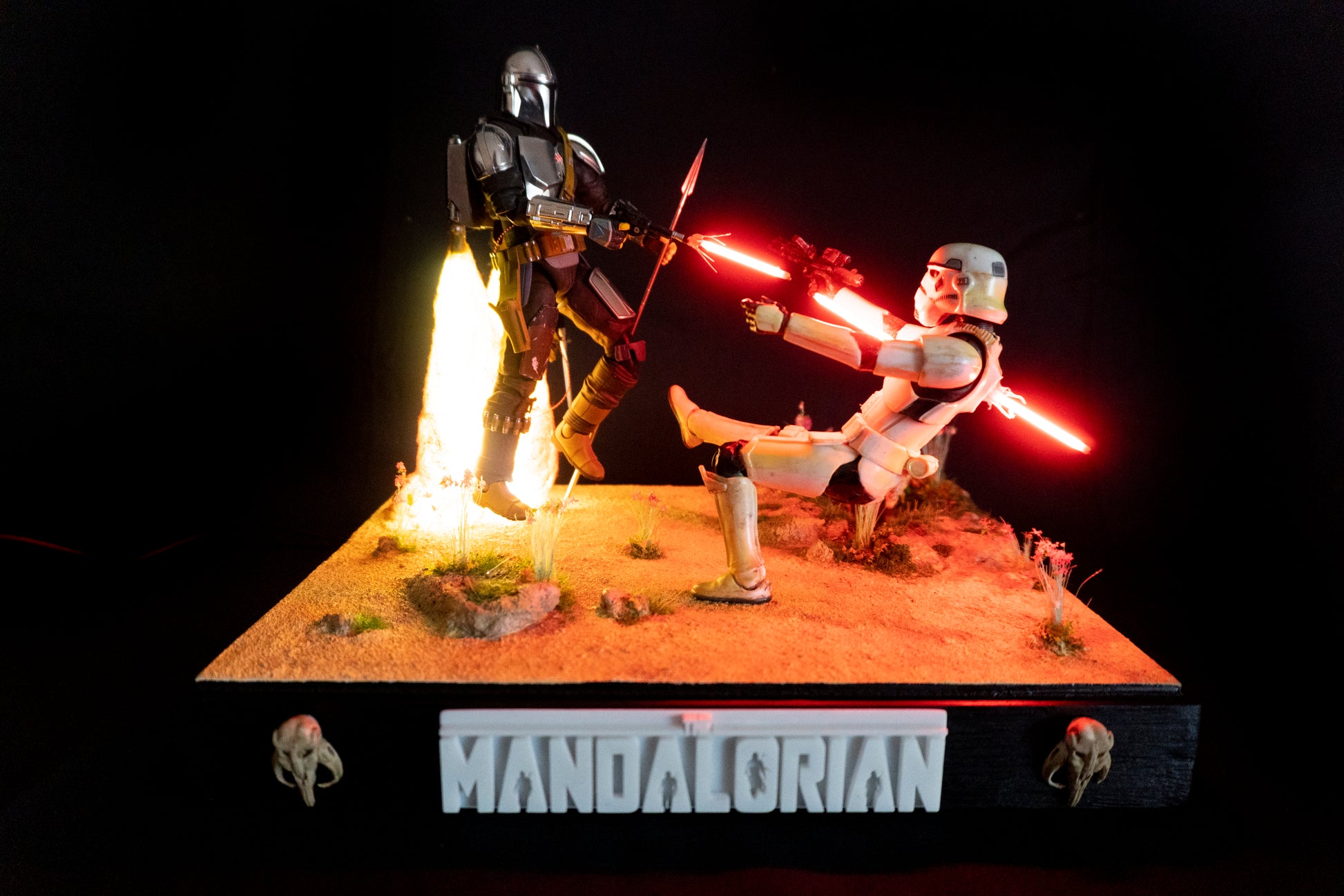 The Mandalorian and stormtrooper lighted diorama. In stock.